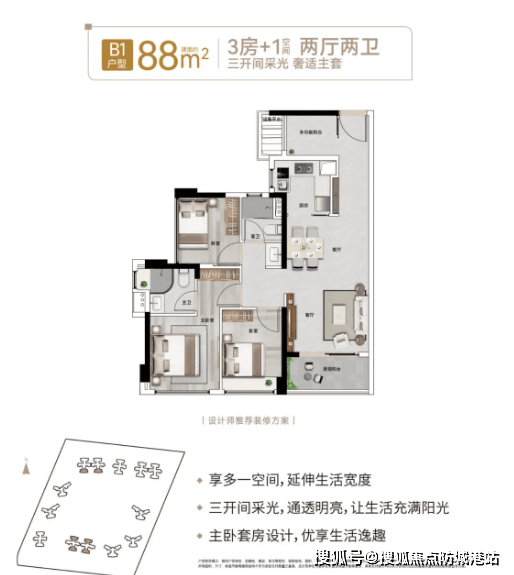 更多!经典 + 1 空间更实用,同等面积享多一房空间