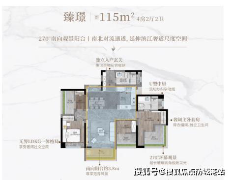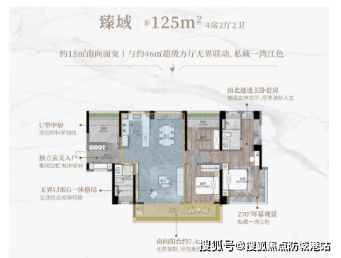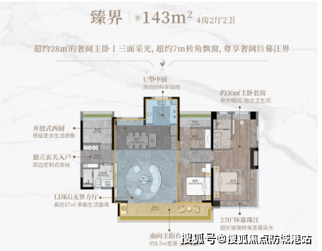 小区 6 栋住宅采用合围式设计,有 2 梯 4 户和 3 梯 3 户两种布局。目前在售 1 - 2 - 3 - 5 - 6 栋,2025 年 12 月交楼,户型为 115㎡、125㎡、143㎡、190㎡全四房产品。户型格局方正,使用率约 100%,LDKG 大方厅设计,国际品牌奢装,270° 主卧环幕观景,引领新一代豪宅典范。同时,金属玻璃幕墙及鹰嘴线脚的运用,使建筑仰视时层层递进,独具特色。