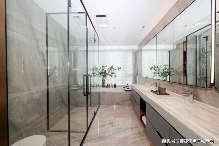 采用卫浴界劳斯莱斯之称,国际高奢卫浴品牌的独立景观卫浴空间,超大浴缸+近3米长一体式双盆洗漱台,将尺度和功能拉满!