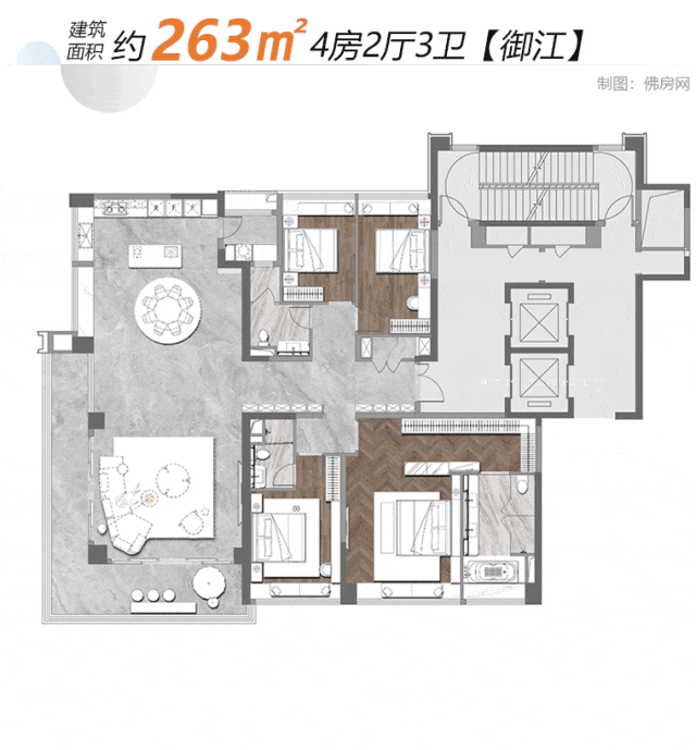 建面约263㎡四房三卫双套房