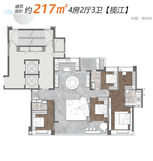 建面约217㎡四房三卫双套房