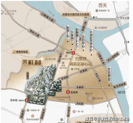【区域贡献】作为茶滘旧改的核心组成部分,项目承载着区域升级的重要使命。通过连片开发54万㎡土地,打造16个高端住宅社区、60万㎡高端商业及5所学校,不仅填补了区域高端人居空白,更将引入总部办公、星级酒店等业态,带动就业与经济发展,助力白鹅潭商务区成为广州西部经济新增长极,为荔湾新城建设注入强劲动力。
