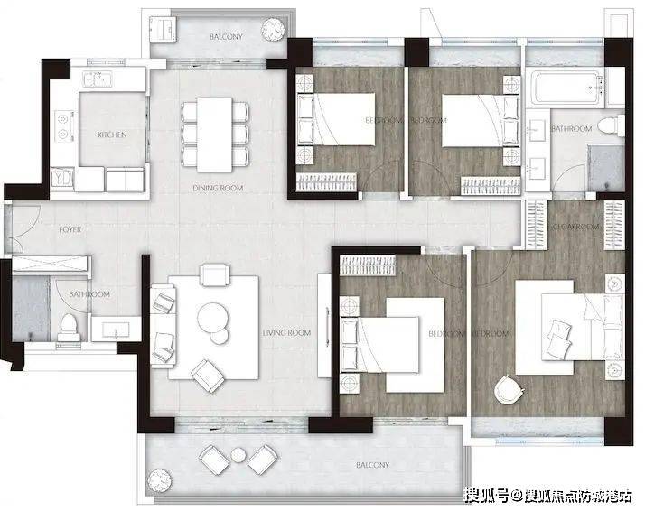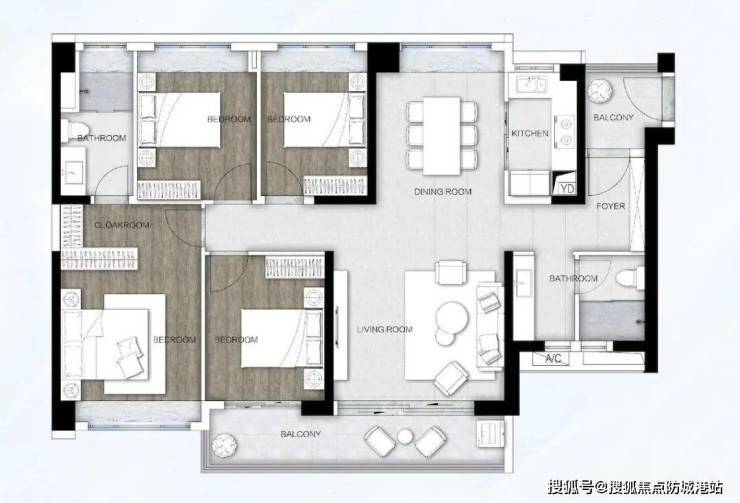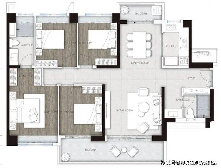 主卧套房:带独立卫浴,超大阳台(约6.8米)连接客厅与次卧,通风效率提升30%。