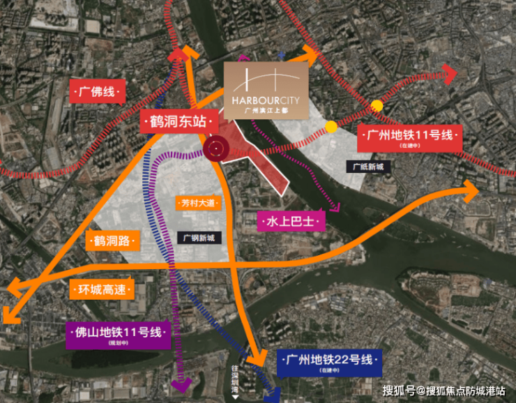 在交通方面,项目享有便捷的多维交通网络,包括地铁、轻轨和水上巴士等多种出行方式。广州11号线以及佛山11号线鹤洞东站双地铁上盖,结合3横2纵大路网+公交站场+水上巴士,形成半小时城央生活圈,1小时湾区生活圈。特别是11号线,被称为老城区换乘之王,可换乘13条地铁线,连接天河、白云、越秀、荔湾和海珠等多个重要区域。