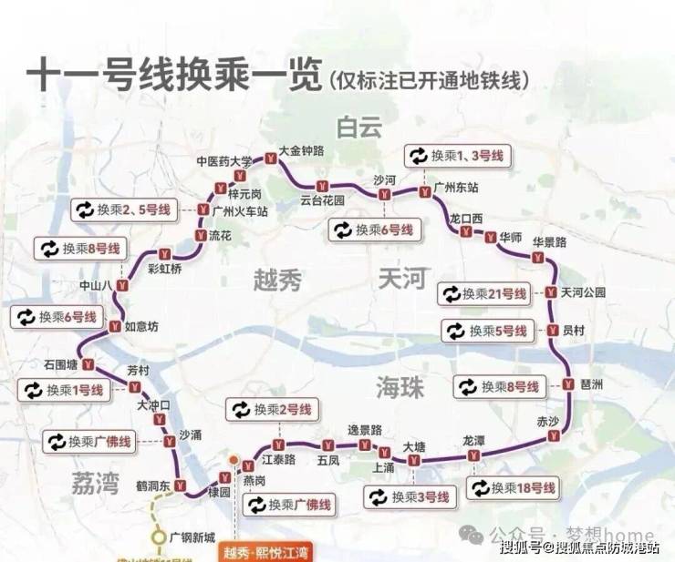 交通便捷度是衡量住宅价值的重要指标,越秀熙悦江湾最大的优势之一便是拥有双地铁加持,且距离地铁站极近,真正实现“出门即地铁,畅联全城”。项目周边拥有两条核心地铁线路,分别是“换乘之王”广佛线和广州首条黄金环城线11号线,两个地铁站均在步行可达范围内,为业主的日常出行提供了极大的便利。