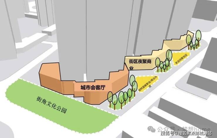 在社区规划上,越秀熙悦江湾注重业主的居住体验,打造了八大主题全龄段泛会所,涵盖老友闲聚街区、榕树温暖聚场等空间,将广府元素与现代休闲需求相结合,焕新海珠西的生活方式。从方案设计图来看,项目采用城市会客厅+街角文化公园+榕树要素的设计理念,融入镬耳墙、广府花窗等广府文化符号,既保留了老广的烟火韵味,又注入了现代生活的活力,让社区不仅是居住的场所,更是邻里交流、休闲放松的空间。
