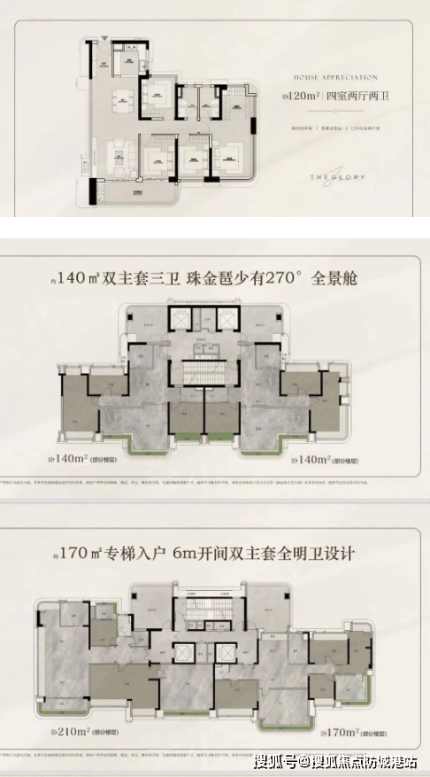 5. 超新规产品,得房率高:天河唯二的超新规地块,阳台占比达25%,不计容公共开放空间达10%,使用率达120%-130%,稳居全市豪宅第一梯队;详细户型图已上市,120-210㎡云幕平层,格局方正、南北通透,户型实用灵动,适配不同改善家庭需求,未来或成为绝版项目,稀缺性强。