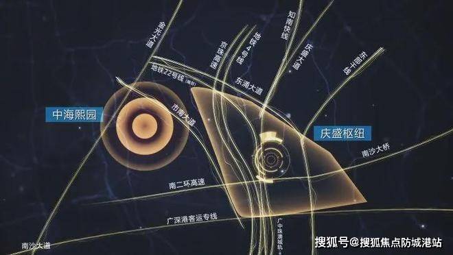 五维立体交通:1 个高铁(庆盛高铁站,13 分钟直达广州南,21 分钟直达深圳北,35 分钟直达香港西九龙)、1 个机场(南沙通用机场,预计 2025 年完工)、2 条地铁线路(地铁东涌站 4 号线、22 号线规划中,还有南沙有轨电车 NS1、NS4规划中)、3 条快速路(南沙港快速路、广澳高速、广州绕城高速)、4 座过江大桥(沙湾大桥、观音沙大桥、虎门大桥、南沙大桥)、10 个公交站(其中距离项目约 400 米东涌镇政府站乘坐南 35 路、南 37 路、南 52 路可约 10 分钟接驳东涌地铁站)、15 条公交线路,出行超便捷