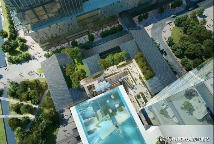 屹立于86米高空,悬挑出建筑立面近6米的空中泳池,更是神来之笔。