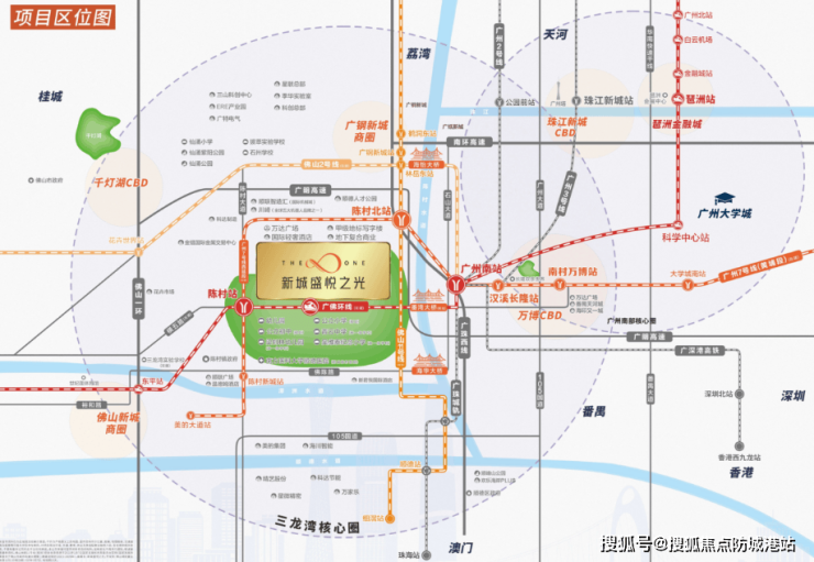 项目位于陈村核心位置,紧邻广州南站和万达广场,得益于广佛一体化战略的推进,区域发展潜力巨大。项目周边交通枢纽密集,地铁广佛线和广州7号线延伸段的开通进一步提升了区域通达性。广州南站作为重要的交通枢纽,为区域带来强大的流动人口和商机。陈村作为广佛融合的前沿阵地,不仅享有成熟的城市基础设施,还靠近广州番禺、琶洲和万博等未来发展中心。得天独厚的地理优势使得该区域房价稳步上涨,成为置业和投资的双重热点。