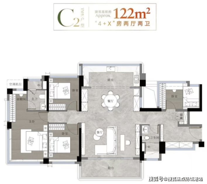 5.3 建面122㎡4+X房两卫:改善优选,大空间适配多人口家庭