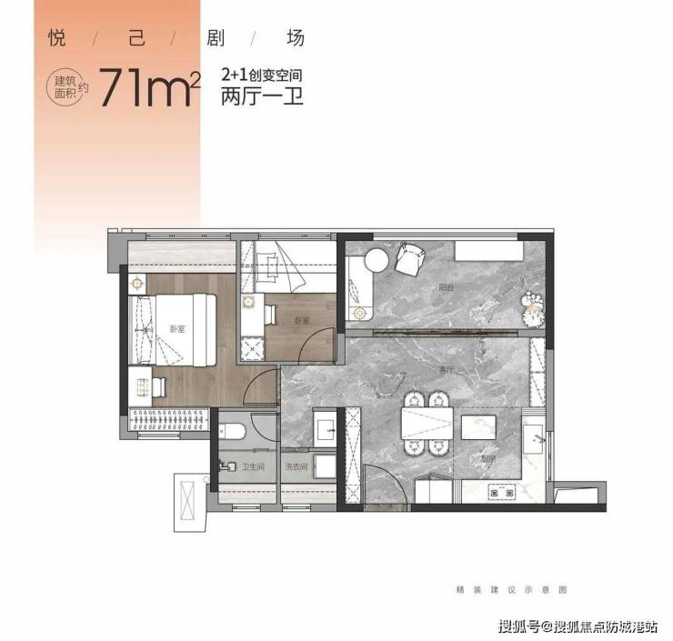 71㎡2+1房,创变空间2厅2卫,悦己主义者的家