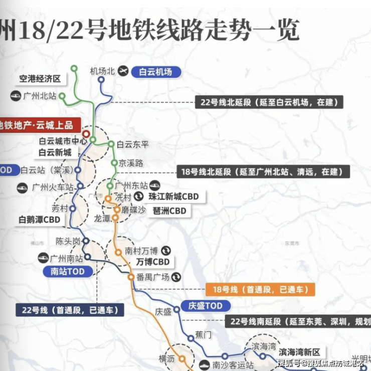 22号线:广州唯一串联海陆空枢纽的高速地铁线,连接白云机场、广州南站、南沙客运港等六大核心枢纽。未来,业主可以乘坐22号线快速抵达广州南站,换乘高铁前往全国各地;或直接前往白云机场,开启全球旅程。