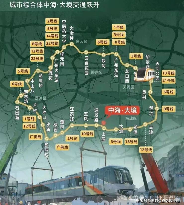 中海大境的生活体验可以用“自在、高效、诗意”三个词概括。项目紧邻地铁11号线上涌站(D出口步行约40米),11号线作为广州首条市区大环线,被称为“换乘之王”,串联天河、越秀、海珠、荔湾、白云五大核心区,10分钟生活圈覆盖珠江新城、琶洲、体育西等主流商圈。自驾方面,新滘西路+广州大道南交汇,一脚油门直达核心商务区,通勤效率极高。
