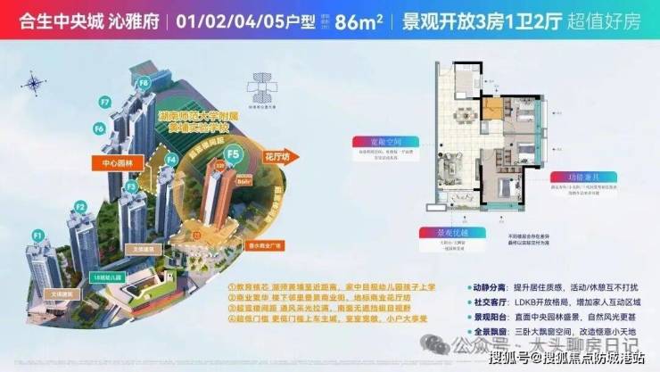 85㎡三房:这是典型的“上车盘”。在总价可控的前提下,强行塞入三个房间,虽然每个房间面积可能紧凑,但对于刚结婚的小两口或急需学区的年轻家庭来说,这是最务实的选择。特别是其中提到的“沁雅府F5央景加推”户型,主打南向景观和稀缺性,试图在有限面积内最大化居住体验。