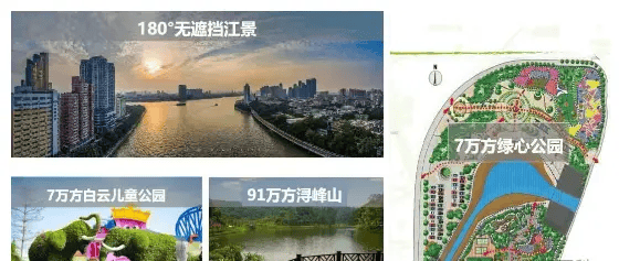 项目背靠91万平方米的浔峰山生态保护区,南接金沙洲滨江公园与绿心公园,东临珠江支流滨江水道,形成独特的“一江一山三园”生态格局。