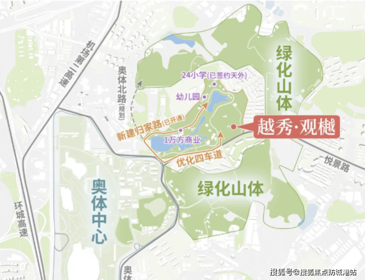 目前,项目距离最近地铁站约2公里,现阶段主要依靠悦景路、珠吉路和奥体路等主干道出行。未来,悦景路四车道拓宽工程预计将于2025年完成,届时居民通行将更为顺畅。此外,世界大观片区规划新建道路,直接连接奥体路和机场二高速,这将极大优化交通网络,进一步缩短通勤时间。项目邻近广园快速和大观南路,可快速连接天河核心区及周边商业区,高速路网便捷,出行效率高。虽然现阶段公共交通尚未完全便捷,但随着道路改造和交通基础设施完善,未来整体通行条件将得到显著改善。无论自驾或乘车,项目均能实现城市与自然环境的平衡,满足高端改善客户的通勤需求。