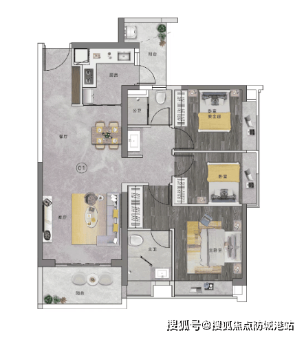 105㎡户型注重居住舒适度,动静分离的设计,让您在享受家庭欢聚时光的同时,也能拥有独立安静的休息空间。