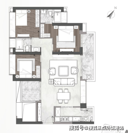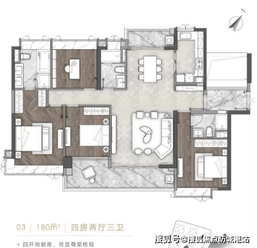 A1-03户型:建筑面积约180㎡,四房两厅三卫