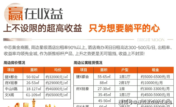 明月豪庭推出33㎡至115㎡多种户型选择,包括一房、两房和三房的设计,标准柱网布局,多套可灵活打通,边套双采光设计让大户型灵活度更高。起价为每平方米28000元,首付仅需40万元即可拥有,且交付即收益。值得一提的是,该区域租赁收益真实达到120元/㎡/月,日租房收入在500-700元之间,投资回报率可观。