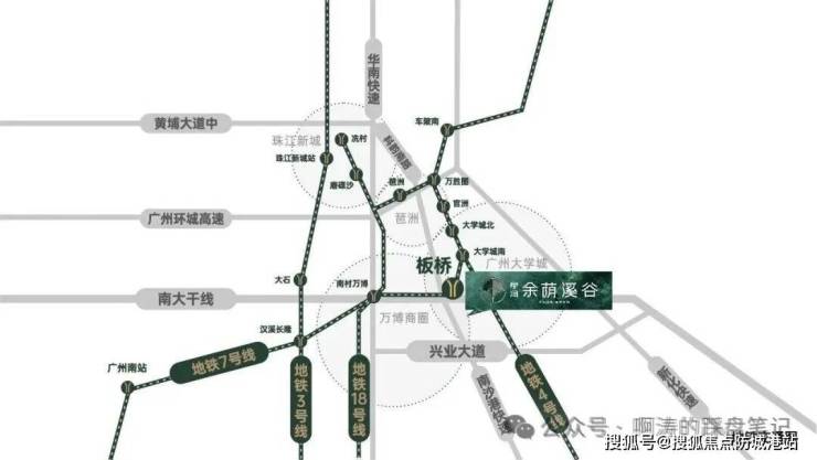 项目位于广州市番禺区南村镇,处于万博 CBD 与大学城两大核心板块的交汇位置,是广州南拓发展的核心节点。根据高德地图实测数据,项目距离万博 CBD 核心区约 3 公里,自驾 10 分钟可达;距离广州大学城约 2 公里,地铁 1 站即可抵达;距离珠江新城核心区约 18 公里,地铁 6 站可直达;距离琶洲数字经济区约 12 公里,地铁 5 站可达;距离广州南站约 10 公里,自驾 15 分钟可达。该板块作为番禺重点发展的核心区域,集聚了超过 2000 家规模以上企业,常住人口超 60 万,是广州南部的经济、商业、人才核心聚集地。项目紧邻百年岭南园林余荫山房,既承接了核心城区的繁华资源,又拥有不可复制的文脉生态资源,在土地资源日益稀缺的主城核心区,这样的占位具备极高的价值属性,是区域内少有的兼具繁华与静谧的优质地块,可同时承接主城核心区的产业外溢与居住需求,板块价值持续稳步提升。