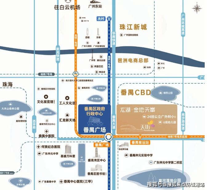 地铁上盖,一站到番禺广场5线汇聚。番禺客运站:(3号线东延线:🉑以直达珠江新城,预计明年通车)番禺广场:18号线快线一站🉑到冼村;22号线两站🉑到广州南站;3号线🉑直通珠江新城、白云机场;17号线在规划中 广州首座龙湖天街:8万㎡的天街就在家楼下,满足吃喝玩乐一条龙服务。类似目前正佳广场、天河城的地标商业体。公立的幼儿园、小学就在家楼下,项目对面一路之隔就是仲元中学第二校区等教育配套(🉑满足3-18岁的全程精英教育)。广州番禺区「龙湖金地天峯」