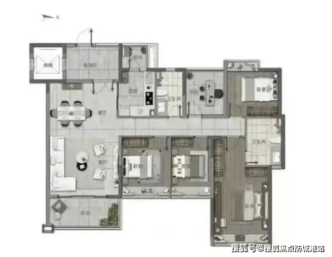 建面约143㎡4+1房户型,更是将高端人居的质感展现得淋漓尽致,堪称改善家庭的首选。私家电梯厅的设计,赋予归家满满的仪式感,电梯门打开即是专属空间,避免了邻里间的尴尬与拥挤。客饭厅采用直厅布局,空间开阔通透,连接超大观景阳台,站在这里,山湖盛景一览无余,无论是晾晒衣物还是休闲观景,都十分惬意。动静分区的合理规划,让休息区与活动区互不干扰,家人在客厅娱乐,卧室里的人也能安心休憩。四个卧室均带飘窗,主卧配备步入式衣帽间与独立卫浴,彰显尊贵与舒适,专属的私密空间,让主人尽享从容时光。额外的“+1房”更是灵活多变,可以根据家庭需求打造为书房、儿童游乐室、休闲室,或是长辈的养老房,每一种规划都能适配家庭不同阶段的需求。