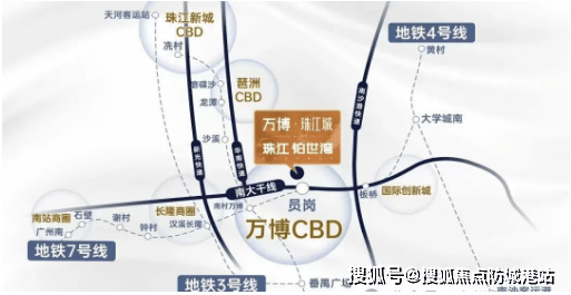 珠江万博城坐落于广州城市中轴线与南大干线经济带交汇处,是万博CBD扩容至7.2平方公里后的重要组成部分。项目总占地约33万㎡,规划为集住宅、商业、产业、教育、交通、生态于一体的超300万㎡产城融合体。