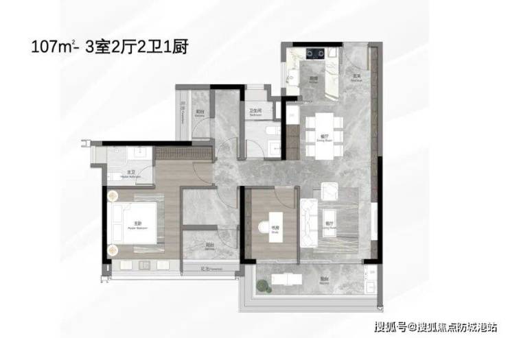 107㎡的三房两厅两卫是刚需适配户型,总价约 749 万元,剩余少量尾货