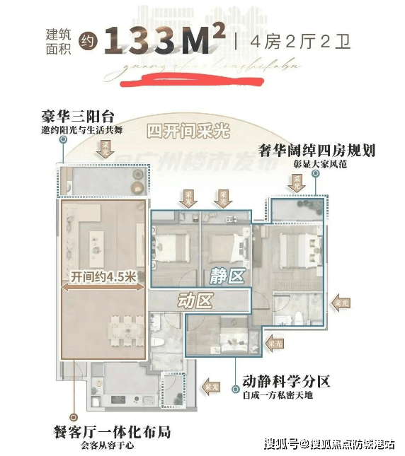 新世界·凯粤湾在产品打磨上延续了港资开发商一贯的精细化基因。当前在售主力户型为95㎡、109㎡、114㎡、123㎡及133㎡,全部采用南北通透布局,LDK一体化设计,最大化提升空间利用率与采光通风效果。以热销的109㎡三房为例,做到三开间朝南,主卧带独立卫浴+观景飘窗,次卧与客厅共享宽景阳台,视野直面珠江或中央园林。133㎡四房则采用双主卧套房设计,满足多代同堂或居家办公需求。所有户型均配备270°转角落地窗,部分高层单位可无遮挡俯瞰珠江航道,日出江花、夜幕霓虹尽收眼底。值得注意的是,项目得房率普遍高于同区域竞品,实测有效使用面积达82%以上。在“好房子”政策导向下,凯粤湾以人性化尺度与功能分区,重新定义了广州改善型住宅的标准。