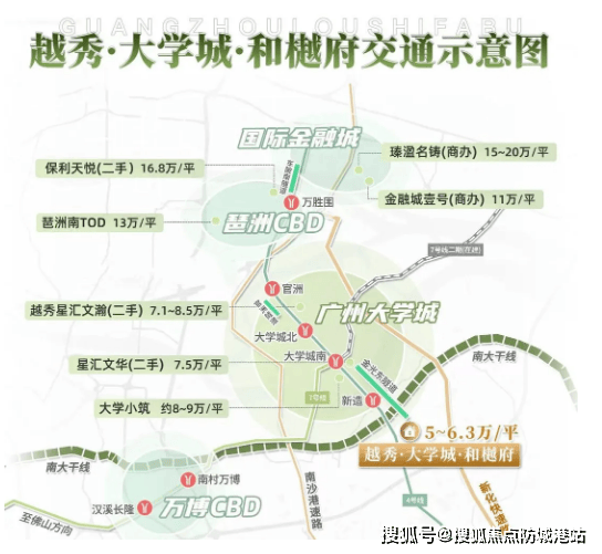 区位是买房的核心考量因素,越秀·大学城和樾府择址番禺大学城二期-国际创新城板块核心,依托板块“一核两翼”的空间结构,享受大学城、生物岛、南岸起步区等多重资源辐射,同时凭借便捷的交通网络,快速串联广州各大核心区域,打造高效便捷的居住生活圈。