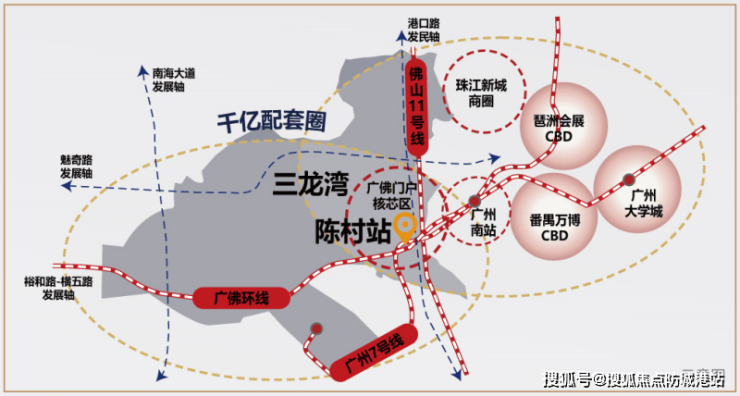 新希望悦珑湾坐落在佛山三龙湾核心板块——陈村TOD,距离广州地铁7号线顺德西延段陈村站仅约200米,步行即可到达,是名副其实的地铁物业。通过该站点,居民可以快速抵达广州南站、大学城和琶洲等重要地点,实现广佛双城核心的便捷串联。此外,周边规划有佛山地铁2号线、11号线以及广佛环线城轨,形成“三地铁一城轨”的立体交通网络,极大地提升了区域的通达性。
