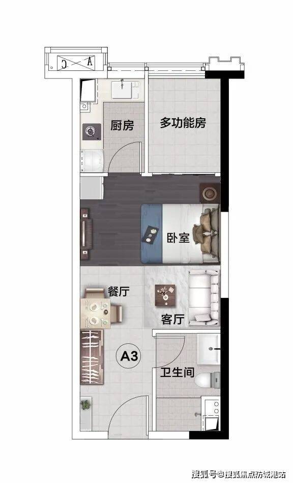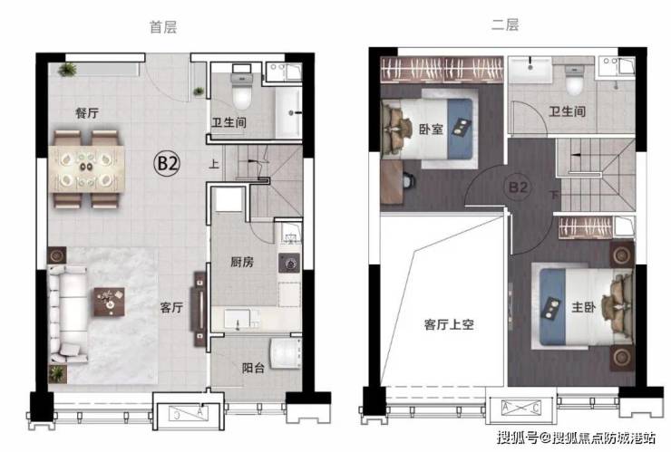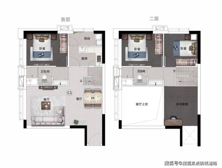 轻奢平层公寓:面积46-92平方米,主力户型为46.22平方米二室二厅一卫,全明设计,餐客厅一体,独立厨房,特设多功能房;59平方米一室二厅一卫,卧连阳台,干湿分离。