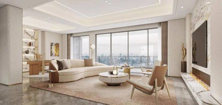 装修标准方面,项目所有户型均采用高端精装交付,严格把控装修品质,选用全球一线品牌建材,核心装修配置如下:室内墙面采用环保高端乳胶漆,环保无异味,适合有老人和小孩的家庭,同时搭配高端壁纸装饰,彰显品质感;地面采用高端防滑大理石地砖,耐磨易清洁,兼顾实用性与美观度,纹理自然大气,提升空间质感;厨房配备全球一线品牌燃气灶、油烟机、消毒柜、嵌入式冰箱、洗碗机等厨具,品质有保障,贴合现代高端烹饪习惯;卫浴采用全球一线品牌马桶、花洒、浴室柜、恒温热水器等,简约大气,耐用易清洁,细节处彰显品质,同时配备智能卫浴设施,提升使用体验;门窗采用断桥铝材质搭配双层中空玻璃,隔音、隔热、防水效果好,有效提升居住舒适度与安全性,同时搭配圆弧玻璃设计,与江景相互映衬,提升空间美观度。