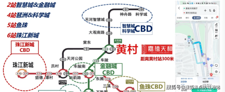 交通是嘉禧天和的核心优势之一,项目距地铁 4 号线、21 号线交汇站黄村站仅 200-300 米,步行仅需 3 分钟即可抵达,真正意义上的 “地铁口物业”。双地铁加持,快速通达广州各大核心区域:2 站直达天河智慧城、3 站抵达金融城、4 站速达琶洲、5 站连通科学城、7 站直达珠江新城,无缝衔接城市核心商圈、产业区与交通枢纽。