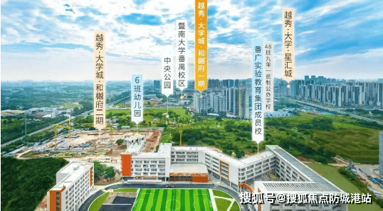 项目将配备1所幼儿园,并对接由越秀集团承建的九年制公立中小学——广州大学附属小学和广州大学附属中学,这两所学校距离项目约1.5公里,提供校车接送服务。周边还有华南理工大学和暨南大学等高等学府,营造浓厚的学习氛围。