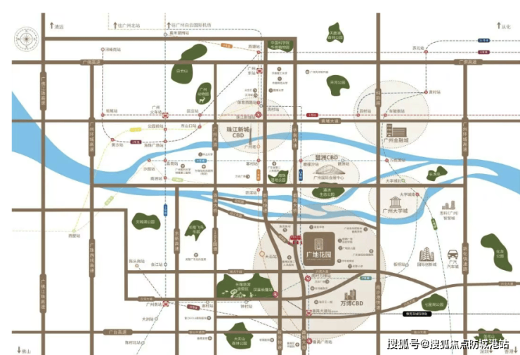 广地花园观灏所在的万博板块虽非传统“区府+TOD”双核心,但具备类似的发展逻辑。万博作为番禺的“经济核心”,其功能相当于“区府外溢的产业与商业中心”,而南村万博站作为3号线、7号线、18号线交汇的枢纽,已形成成熟的TOD模式,实现“地铁+商业+办公”的高效衔接。