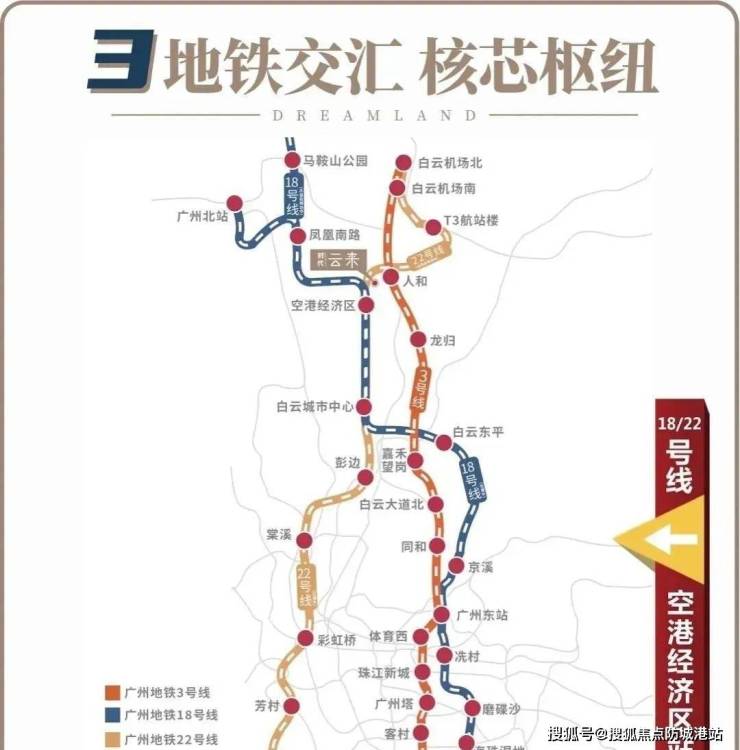 【三地铁通达主城湾区】毗邻地铁3号线人和站,2 站达嘉禾望岗,无缝换乘2号线及14号线,6 站到白云新城;距18/22号线空港经济区站(规划)仅约500米,未来5站珠江新城,计划将向北延伸至清远,向南衔接东莞,直通深圳。同时联结各大TOD枢纽,未来规划将南延至中山、珠海。
