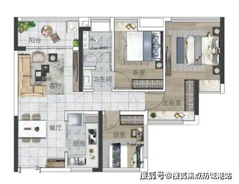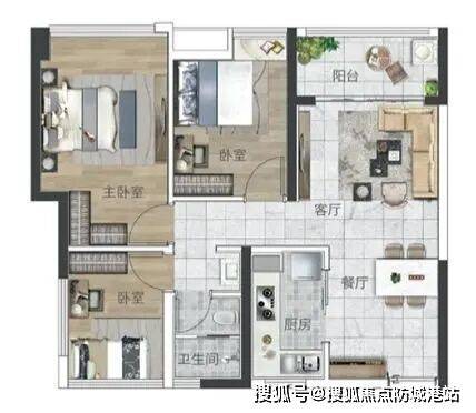 建面77-79㎡三房户型更适合三口之家,主卧空间宽敞,可定制步入式衣帽间,解决衣物收纳难题;次卧可作为儿童房,根据孩子年龄阶段调整布局,幼儿时期放置婴儿床与玩具收纳架,学龄后更换为书桌与衣柜,满足成长需求;最小的房间可作为多功能空间,平时作为储物间,若有亲友来访可临时改造成客房,放置折叠床与简易衣柜,兼顾实用性与灵活性。