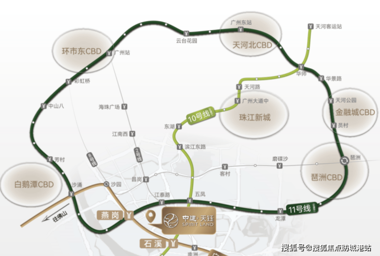 中建天钰交通优势明显,距离地铁广佛线与10号线换乘站石溪站约700米,步行可达;另一侧还有广佛线与11号线交汇的燕岗站,形成多线环绕的便捷交通体系。项目周边主干道包括工业大道、新滘西路与江南大道,快速连接越秀、荔湾及番禺等区域,出行高效便捷。