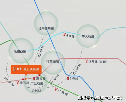 项目距广佛线燕岗站约450米,步行仅需5-8分钟即可抵达,通过广佛线可快速接入3号线,7站直达珠江新城,轻松通达广州核心商务区,满足日常通勤与商务出行需求。此外,海珠环岛路(在建)工程进度持续推进,建成后将进一步优化区域交通动线,提升滨江区域的出行体验,同时为项目带来更大的价值提升空间。