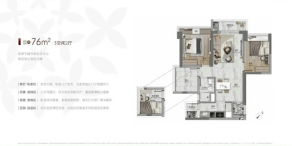 76-78㎡三空间两厅两卫:紧凑实用的设计,适合刚需购房者。每个房间都有充足的采光和通风条件,布局合理。