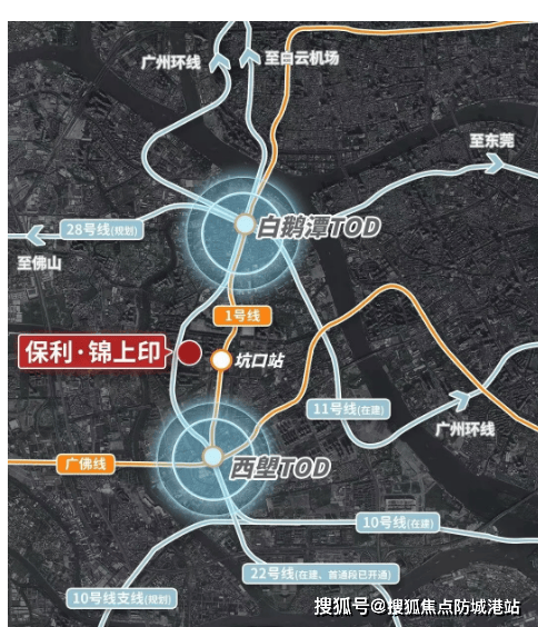 保利臻誉距 1 号线坑口站直线距离约 880 米,步行 13-15 分钟可达,2 站即达双 TOD(西朗及芳村),可快速通达海珠、越秀等区域,享 30 分钟城芯生活圈。周边还有花地大道、龙溪大道、环城高速等干线,自驾出行也较为便捷。无论是公共交通还是自驾,都能让业主轻松到达广州的各个角落,满足日常出行和商务出行的需求。
