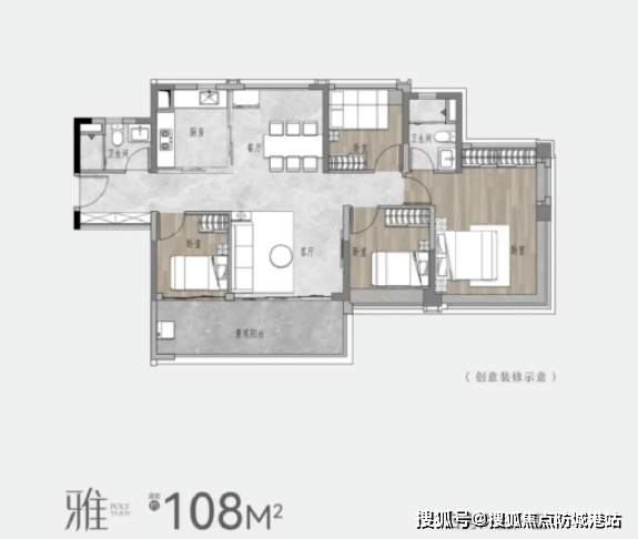 约109㎡四房两卫 ≈ 广钢约139-148㎡旧规四房。