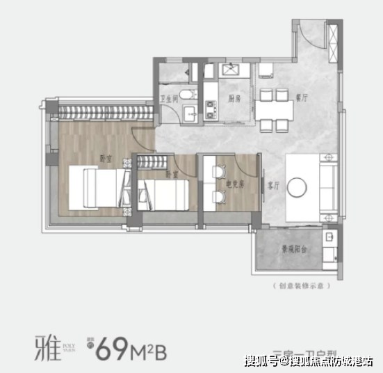 约69㎡三房一卫 ≈ 广钢约89-94㎡旧规三房;