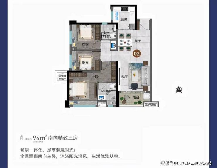 户型①【竖厅——94㎡三房二厅二卫】