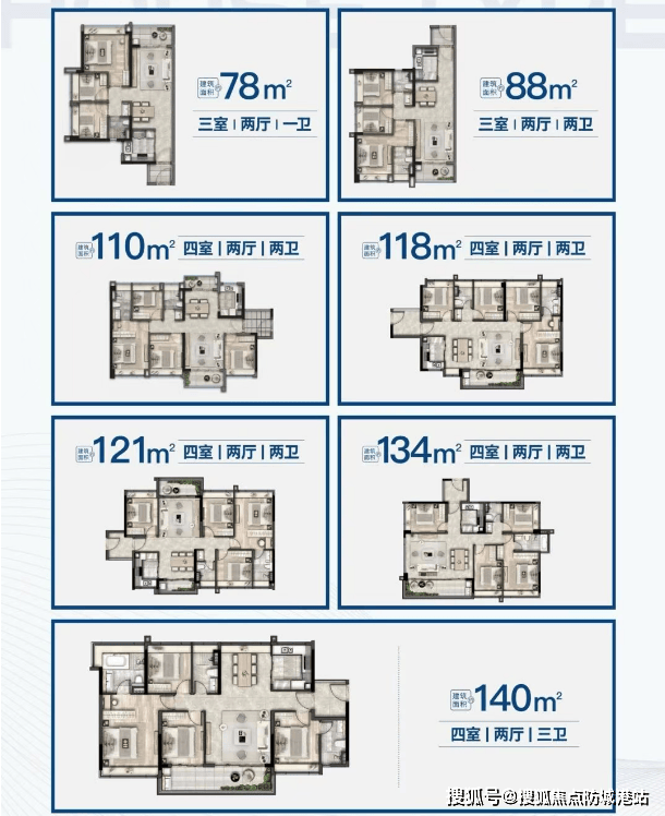 五矿招商江天际提供的户型从78㎡至140㎡不等,能够满足不同家庭的需求。所有户型均赠送入户花园,实用率高达92%-99%,卧室全明飘窗设计,保证了充足的采光。特别是140㎡四室两厅三卫户型,采用方正宽奢布局,巨幕观景阳台设计,双套间大面宽,拉阔生活尺度,四开间朝南,大面宽采光,使住户能够尽情享受江景带来的惬意生活。