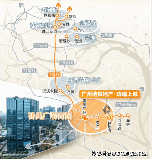 产业溢价:番禺广场定位“数字创新枢纽”,规划引入30家世界500强企业,带动高端人才流入。