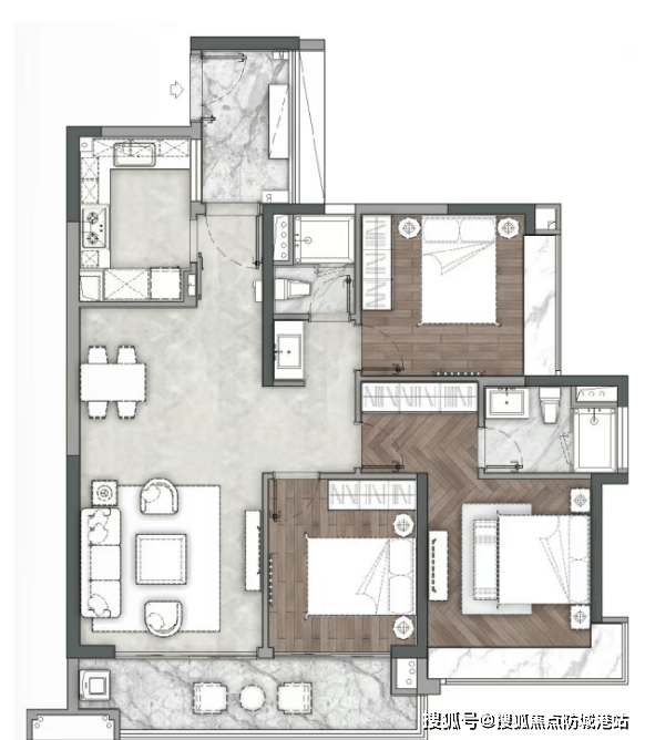 答:户型为 120-190㎡三房、四房,均为山景大平层,5 栋住宅呈 15° 错落排布,户户直望白云山摩星岭,视野无遮挡,部分户型还带灵动拓展空间,空间利用率高。