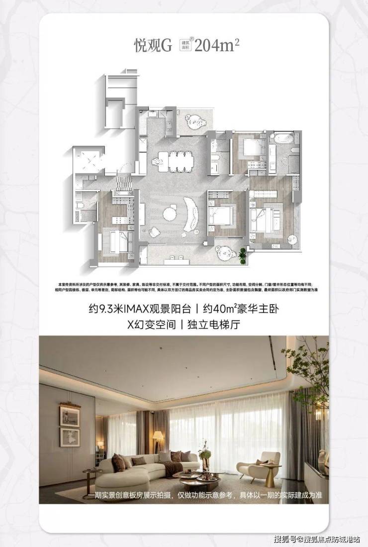* **户型设计亮点**:主力户型包括98㎡至300㎡的多种选择,采用LDKG一体化设计,将客厅、餐厅、厨房和阳台融为一体,创造出一个开阔通透的生活空间。此外,还有270°全景天幕视野主卧,提供沉浸式的观景体验。(400-078-0012售楼处已认证)